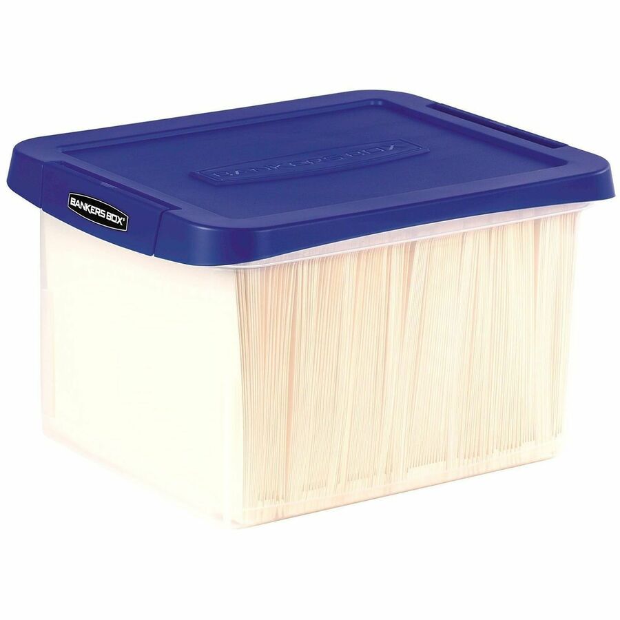 External Dimensions: 14.2" Width x 17.4" Depth x 10.6" Height - Media Size Supported: Letter 8.50" x 11" , Legal 8.50" x 14" - Lid Lock Closure - Heavy Duty - Stackable - Plastic - Clear, Blue - For File, Document - 2 Pack - TAA Compliant