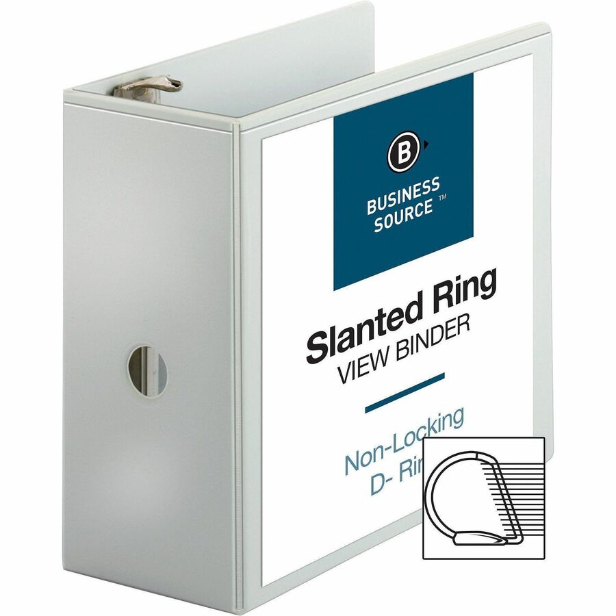 | Marketing Information | Basic D-Ring View Binder offers a clear, nonglare overlay on the front, back and spine for easy customization and identification. Slant-D rings hold 25 percent more paper than traditional binders. Back-mounted metal rings allow pages to lie flat. Two triggers on the ring mechanism provide easy access to your documents. 5" capacity holds up to 1,100 letter-size sheets. Clear pockets on the inside covers offer extra document storage with a 30-sheet capacity for each pocket. Design also features a sturdy chipboard core and exposed rivets. Three-ring binder is made of polypropylene. |