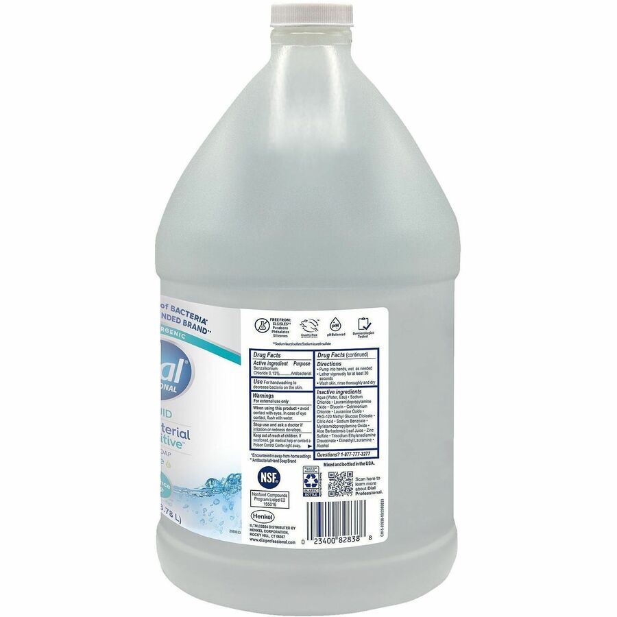 | Marketing Information | Sensitive Skin Antibacterial Liquid Hand Soap Refill kills 99.9 percent of bacteria and provides broad-spectrum, antibacterial effectiveness. Soap contains moisturizers to help condition dry skin every time you wash. Specially formulated soap gently cleanses your skin for frequent use without drying out your hands. Extra-mild, dye-free formula is dermatologist-tested for sensitive skin. Refill your Dial Sensitive Skin Antibacterial Liquid Hand Soap dispenser bottle (not included). |