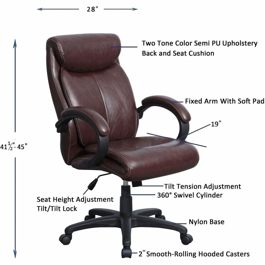 Brown Seat Color - Bonded Leather Seat Material - Brown Back Color - Bonded Leather Back Material - High Back - 1 Each