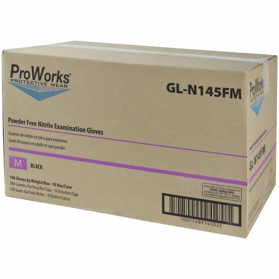 ProWorks Black Nitrile Exam Gloves, Powder Free 5 mil (GL-N145F)
