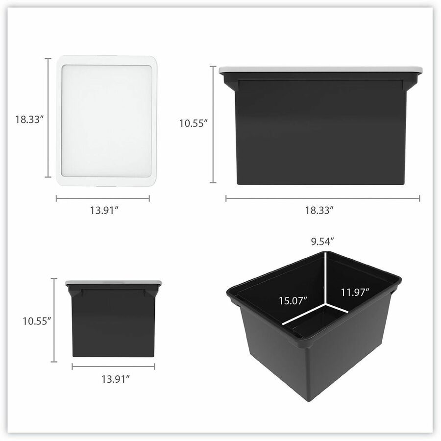 External Dimensions: 14.3" Width x 19" Depth x 10.9" Height - 50 lb - Media Size Supported: Letter, Legal - Snap-tight Closure - Heavy Duty - Stackable - Plastic - Black, Gray - For File - Recycled - 1 / Each