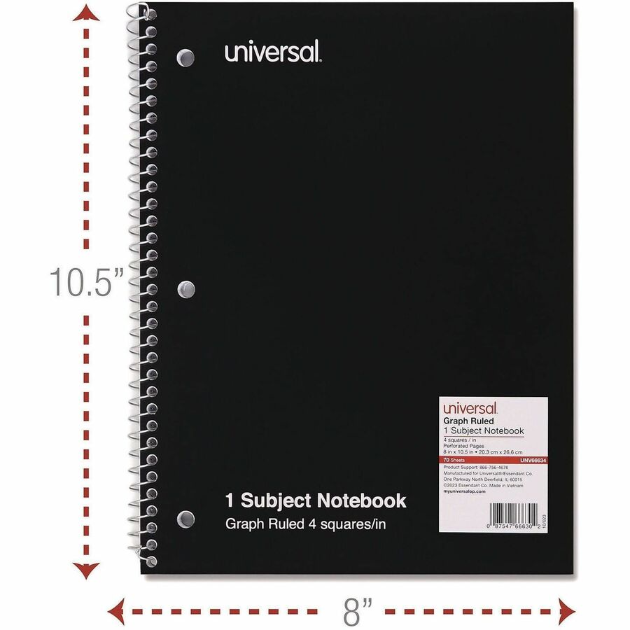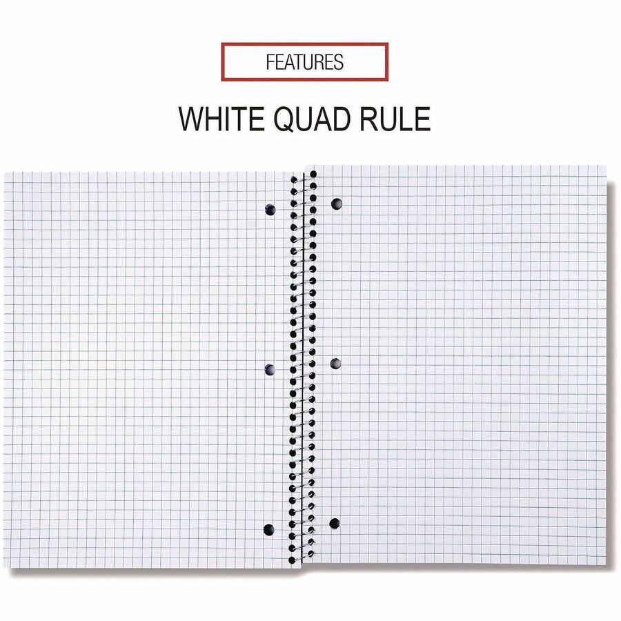 1 Subject(s) - 70 Sheets - Spiral - Quad Ruled Front Ruling - 3 Hole(s) - 15 lb Basis Weight - 10.50" Height x 8" Width - White Paper - Black Paperboard, Blue, Green, Red Cover - 4 / Pack